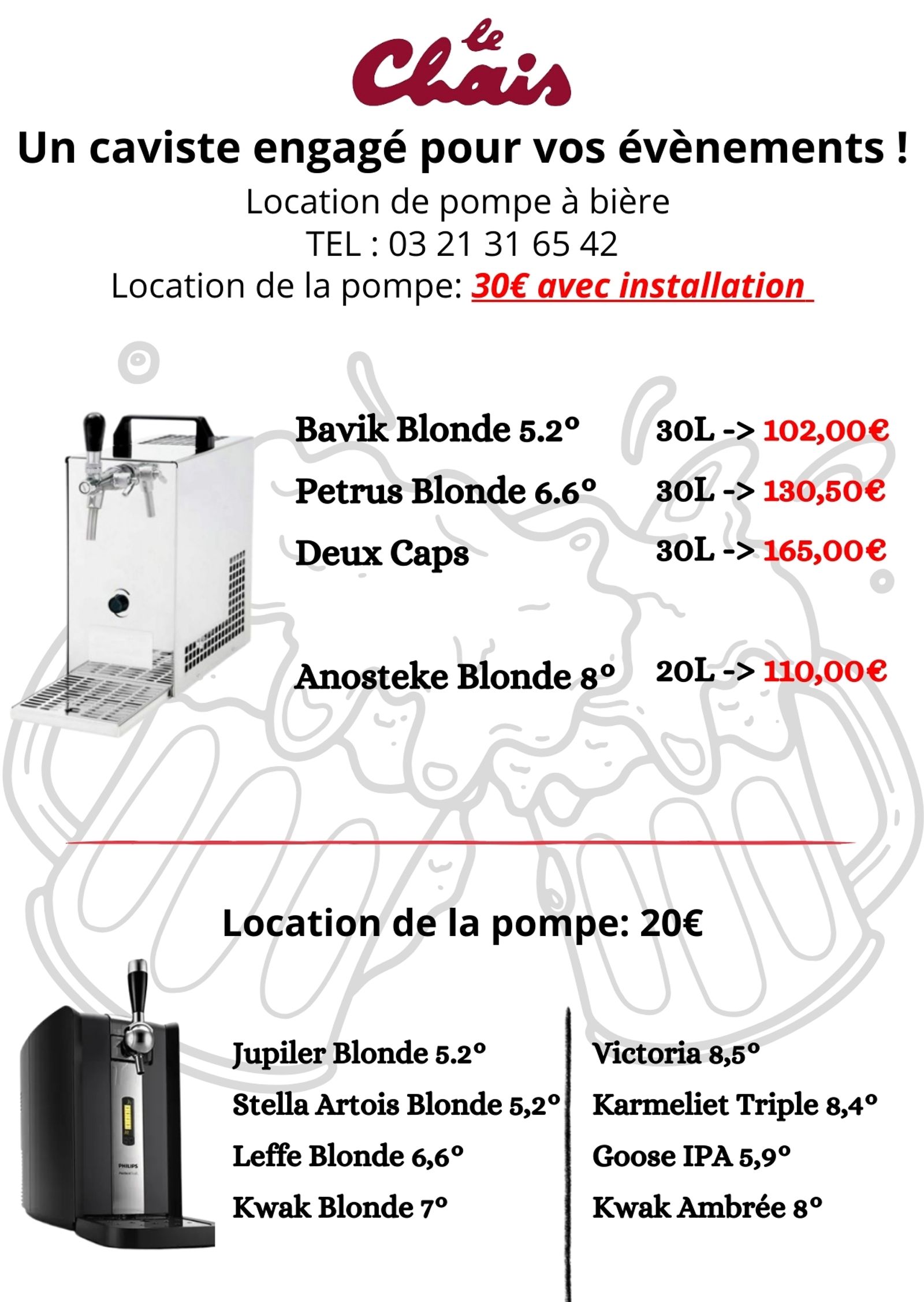 📞 Réservez votre pompe à bière dès maintenant par téléphone 03 21 31 65 42 ou notre formulaire de contact